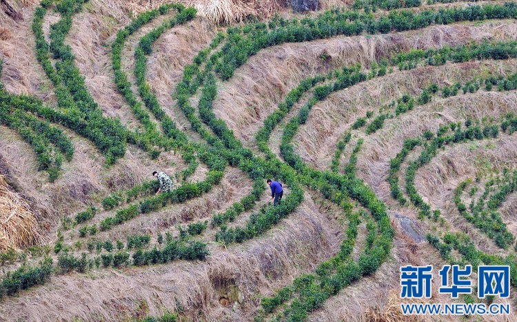 村民在茶葉基地除草。新華網(wǎng)發(fā) 鄧龍華攝