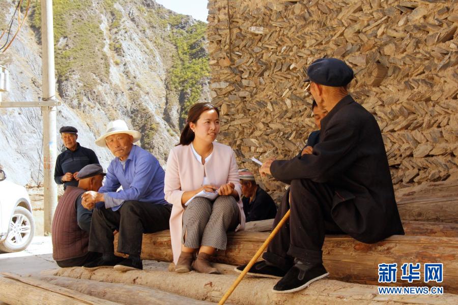 甘肅省甘南藏族自治州舟曲縣扶貧辦副主任張小娟(右二)在下鄉(xiāng)時向群眾了解情況(2018年4月攝)。2019年10月7日,時任縣扶貧辦副主任的張小娟在完成曲告納鎮(zhèn)上大年村脫貧攻堅(jiān)縣級抽樣調(diào)查工作后,返程途中所乘車輛不慎墜江,因公殉職。新華社發(fā)