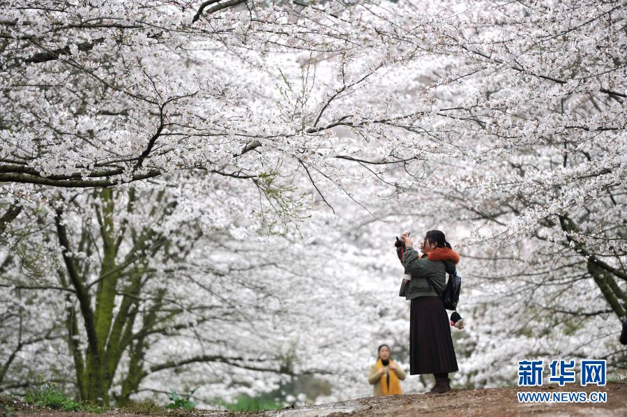 3月11日,游人在貴州省貴安新區(qū)的櫻花園內(nèi)賞花拍照。