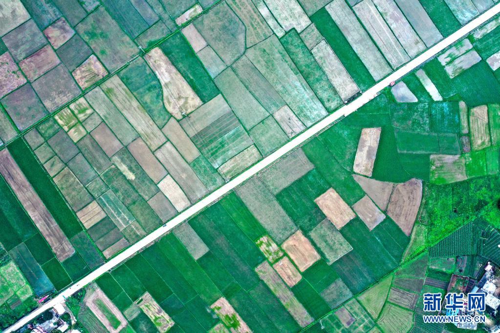 這是廣西欽州市欽南區(qū)康熙嶺鎮(zhèn)的田園風(fēng)光(4月5日攝,無人機(jī)照片)。