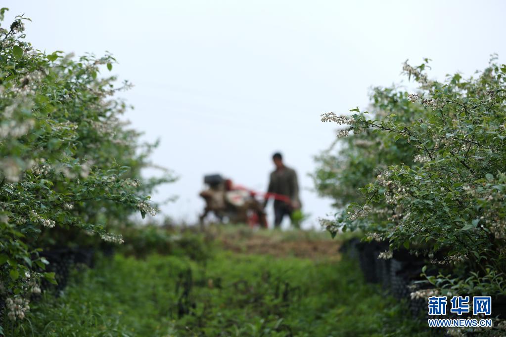 4月5日,村民在貴州省黔東南苗族侗族自治州丹寨縣興仁鎮(zhèn)甲腳村藍(lán)莓園內(nèi)犁地。