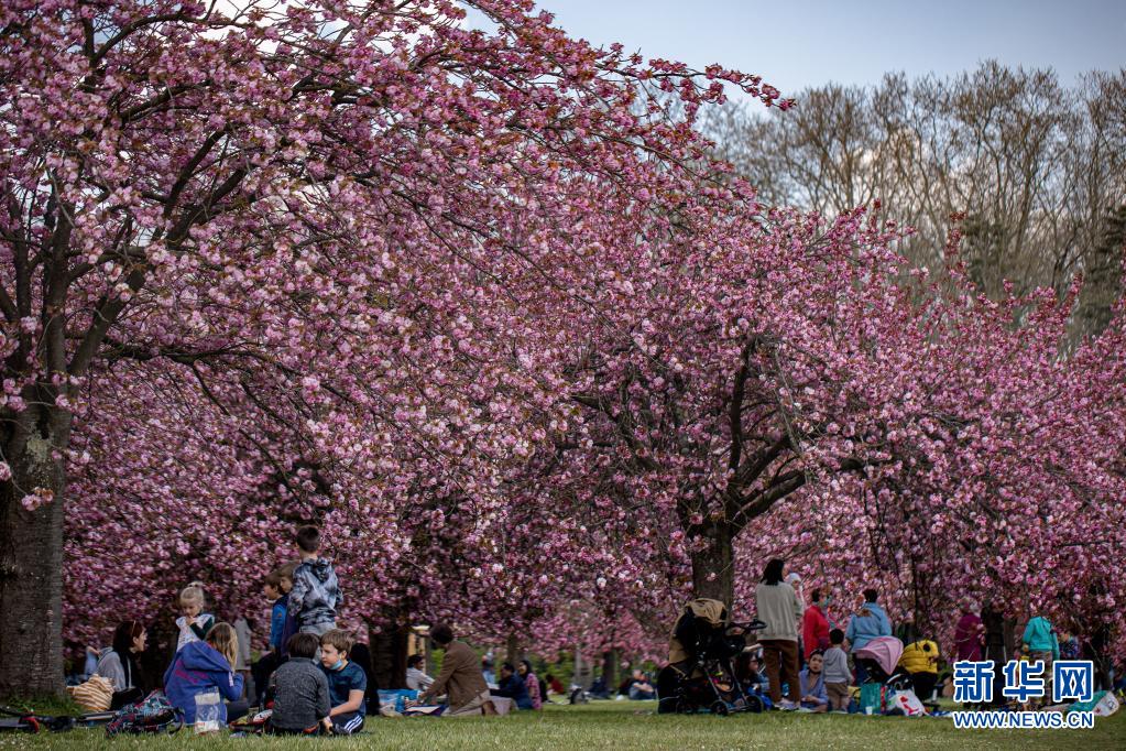 4月20日,人們?cè)诜▏?guó)巴黎近郊的國(guó)璽公園欣賞櫻花。