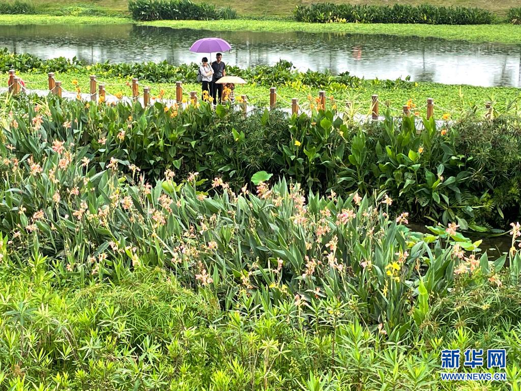 立夏時(shí)節(jié),廣西南寧市那考河濕地公園內(nèi)草木吐翠、鮮花斗艷,一派繁茂景象。