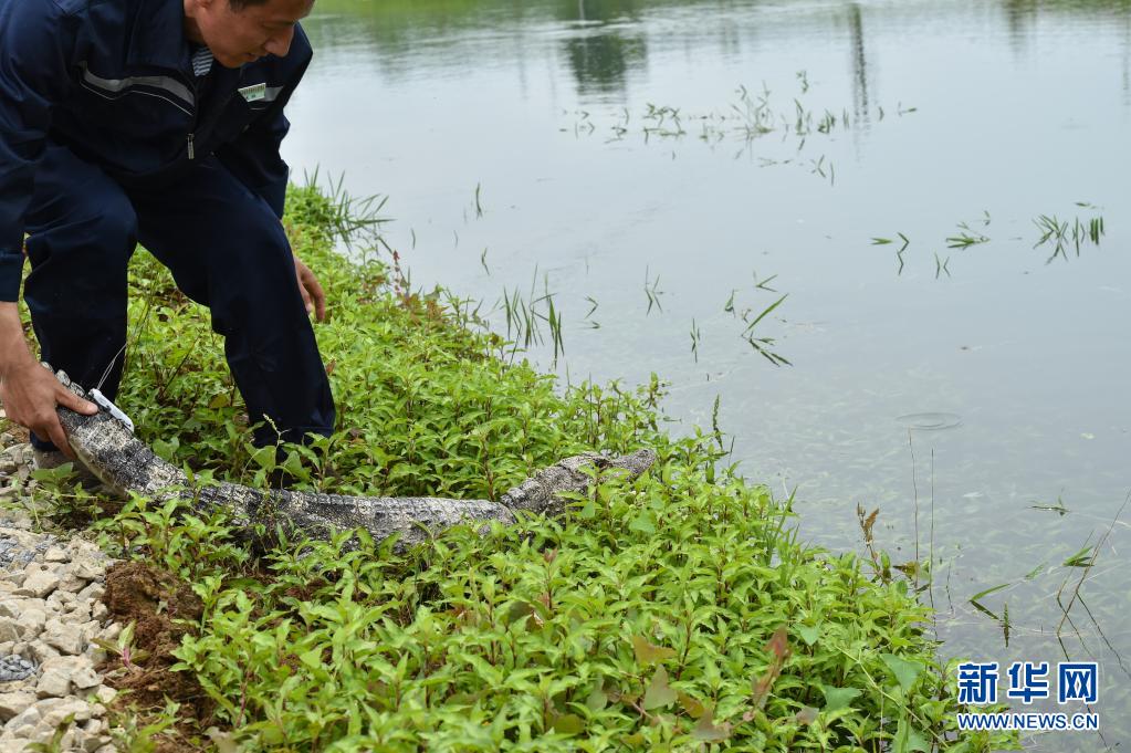5月13日,工作人員放歸揚(yáng)子鱷。