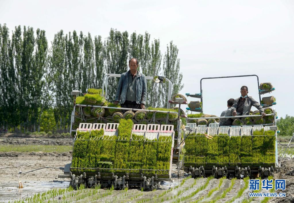 進(jìn)入5月,新疆溫宿縣的11萬余畝水稻進(jìn)入插秧期。稻田間,插秧機(jī)往來穿梭,一片繁忙景象。