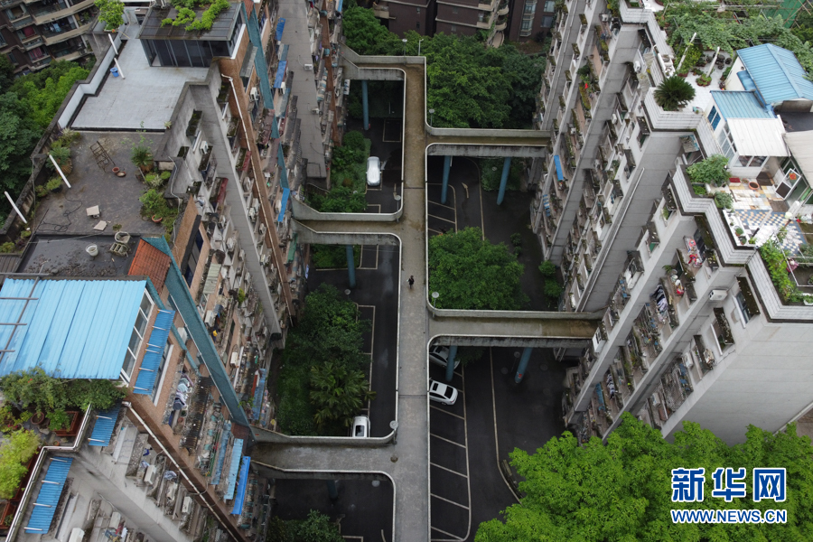 繼輕軌穿樓、高鐵穿樓、“貓頭鷹”立交橋之后,重慶又一建筑走紅網(wǎng)絡(luò)。近日,有網(wǎng)友發(fā)現(xiàn),重慶渝中區(qū)一個(gè)老小區(qū)幾棟居民樓的4樓中間,建起了連接各個(gè)單元的空中走廊,居民出入猶如空中漫步。新華網(wǎng) 耿駿宇 攝