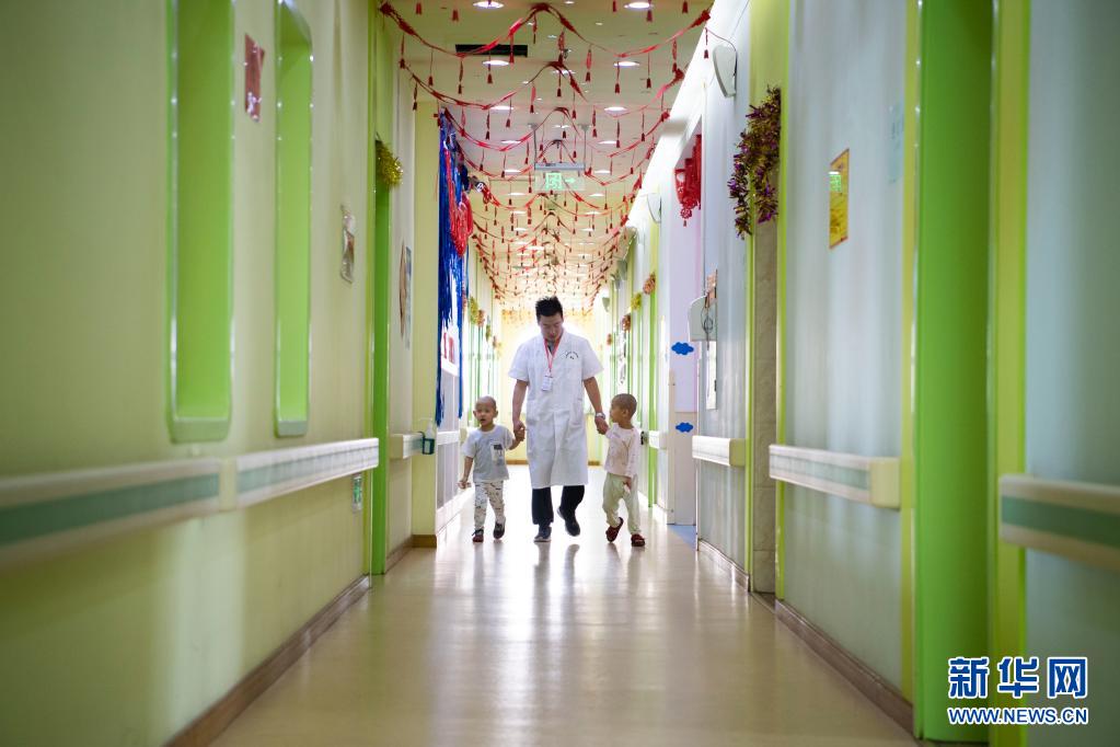 在太原市社會(huì)(兒童)福利院,黨龍祥帶孩子們?cè)跇堑郎⒉剑?月26日攝)。新華社記者 楊晨光 攝
