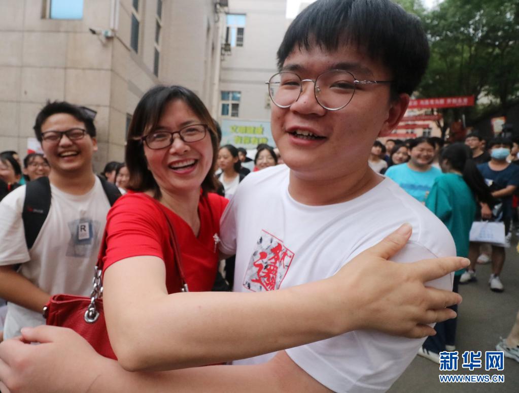 6月9日,在湖南省婁底市第二中學(xué)考點(diǎn),走出考場(chǎng)的老三李慶民和班主任舒老師擁抱。