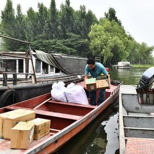 位于微山湖北端的山東省濟寧市微山縣南陽鎮(zhèn)四面環(huán)水,交通不便,生活物資和郵件包裹全靠船進船出。36歲的共產(chǎn)黨員王少朋,自2007年工作以來就一直負(fù)責(zé)著微山縣郵政分公司南陽支局唯一一條水上郵路。