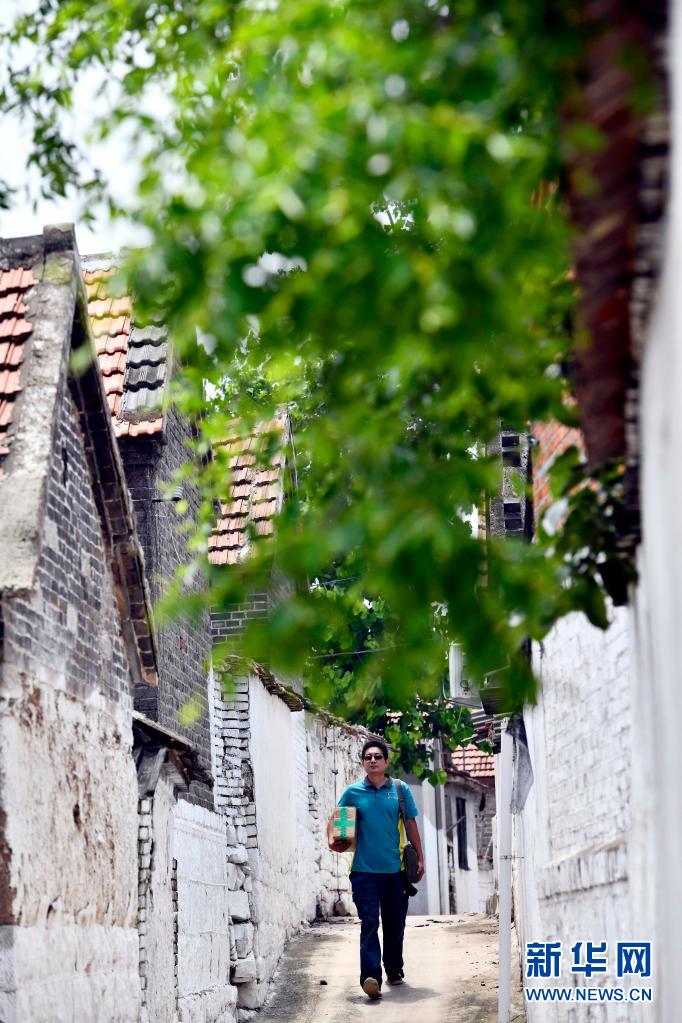 6月20日,在微山縣南陽鎮(zhèn),郵遞員王少朋為柳溝村村民投遞郵件。