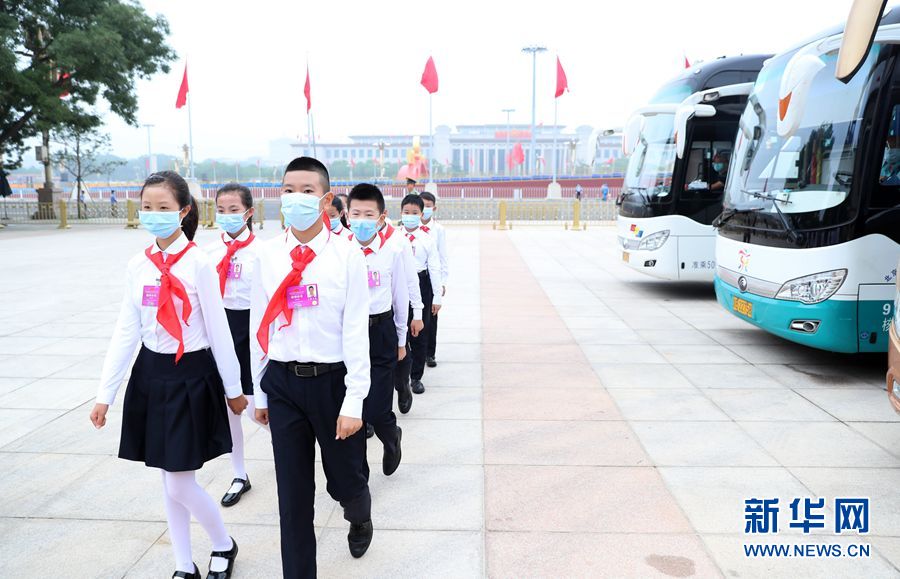 6月29日上午10時,“七一勛章”頒授儀式將在人民大會堂隆重舉行。這是參加頒授儀式的少先隊員。新華網(wǎng) 陳杰 攝