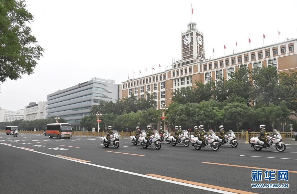 這是“七一勛章”獲得者集體乘坐禮賓車從住地出發(fā),由國賓護(hù)衛(wèi)隊(duì)護(hù)衛(wèi)前往人民大會堂。