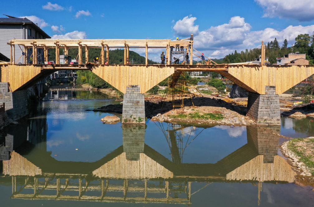 比如,万安桥的灾后修缮严格遵循文物保护原则,最大限度续用旧构件,木拱桥传统营造技艺传承人担任修复“主墨”,帮助千古廊桥重回世间。