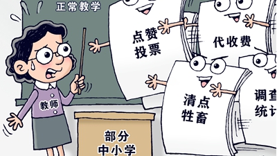 人數(shù)不夠教師來(lái)湊。主責(zé)主業(yè)成“副業(yè)”,工作負(fù)擔(dān)蹭蹭漲,讓教師苦不堪言。教師的時(shí)間都用在“副業(yè)”上了,哪還有時(shí)間教書(shū)育人?為教師減負(fù),要減掉的正是那些教師不應(yīng)承擔(dān)、與教育教學(xué)無(wú)關(guān)的事項(xiàng),既要“治標(biāo)”,也要“治本”。