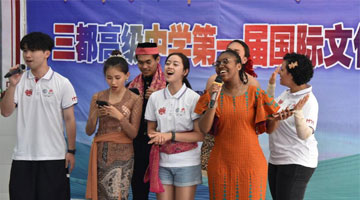 6月5日,来华留学生在三都高级中学第一届国际文化节上演唱歌曲。