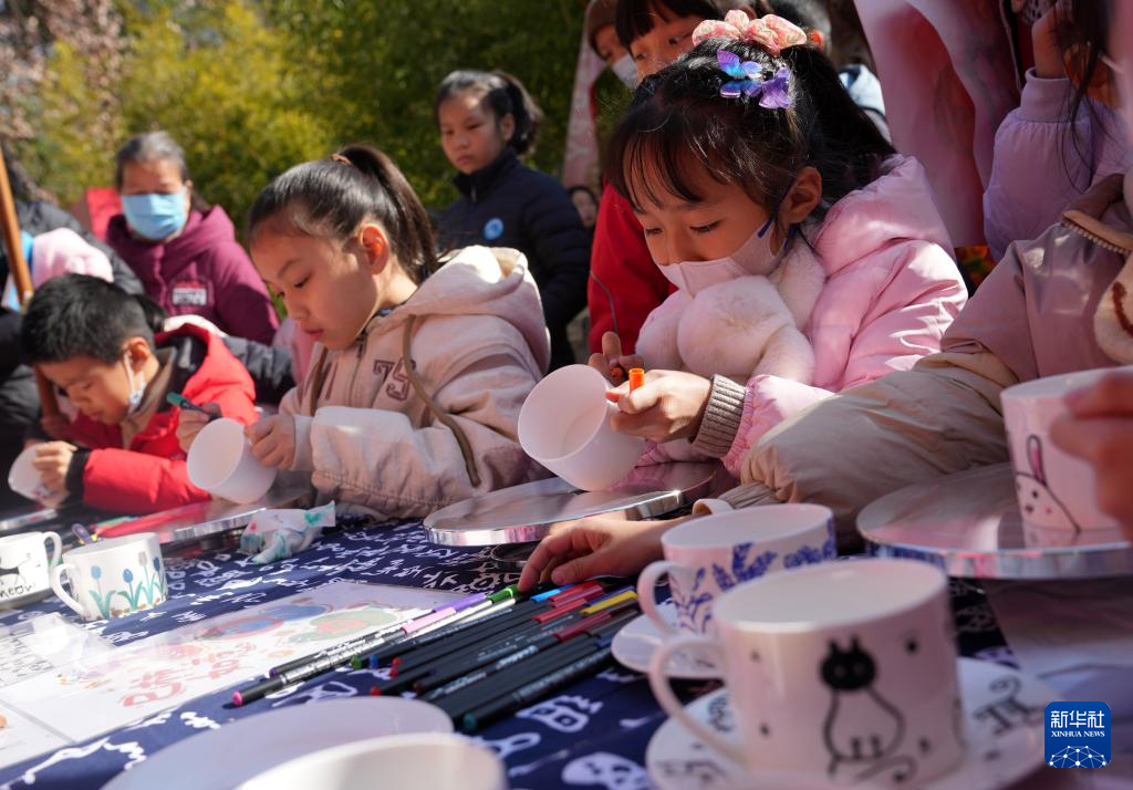 1月15日,几名小朋友在活动现场体验陶艺彩绘。
