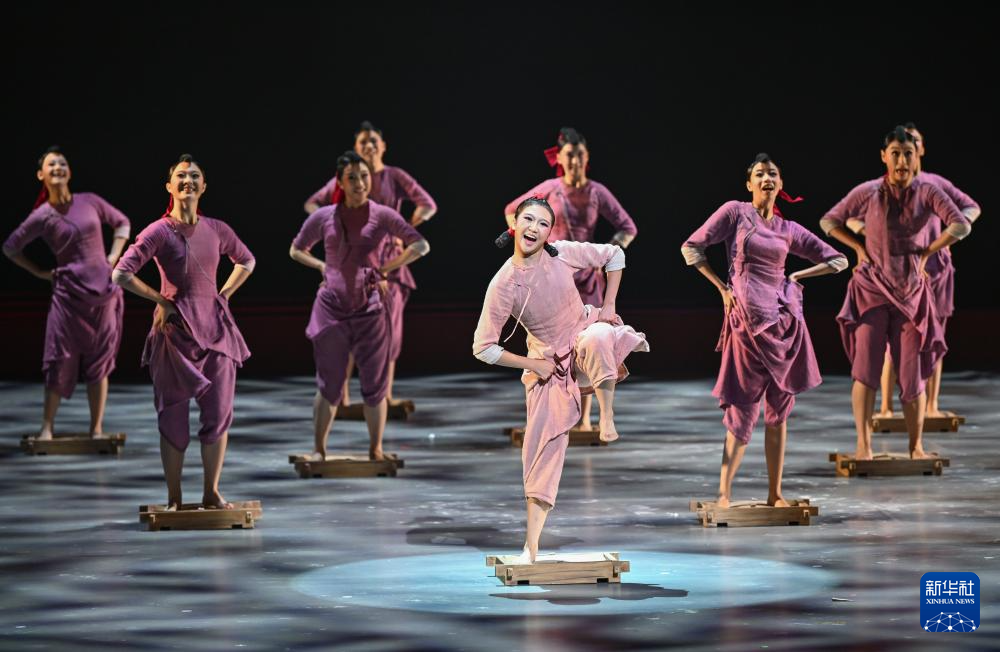 11月4日,在重庆群星剧院,演员表演舞蹈《画里乡田》。