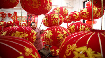 1月21日,北京小学学生在“小花蕾过大年”期末实践活动上猜灯谜。