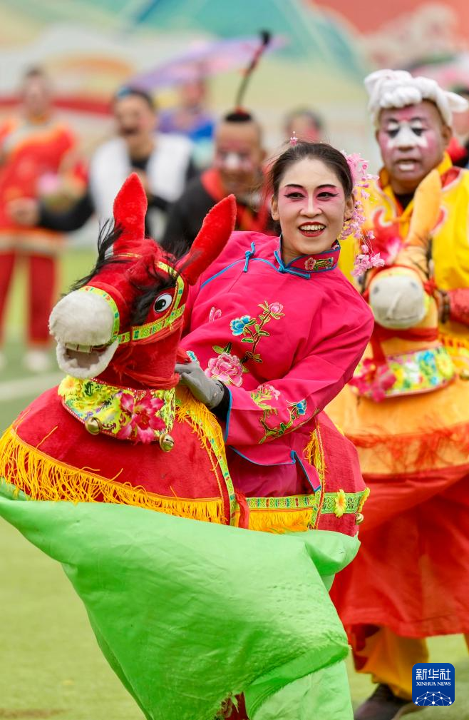3月1日,2026年“塞上非遗韵·红火中国年”宁夏社火展赛决赛在宁夏银川市览山公园启幕,来自全区的20支社火队伍同台竞技,为市民献上一场精彩的社火大展演。