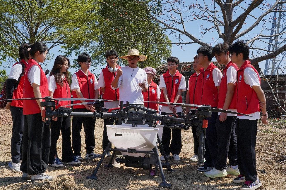 实践活动将劳动教育贯穿始终,在专业教师带领下,同学们全程参与丝苗米种植的无人机飞播、精准施肥等春耕全流程作业。“过去只在学校的实训场模拟飞行,今天亲手操作植保无人机完成实际播种,才真正理解什么叫‘知农爱农’”,同学们纷纷表示。