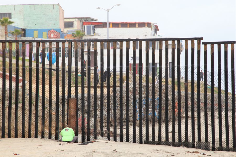 A worker fix the border wall between the U.S. and Mexico, in San Diego, the United States, April 30, 2018. (Xinhua/Huang Heng)