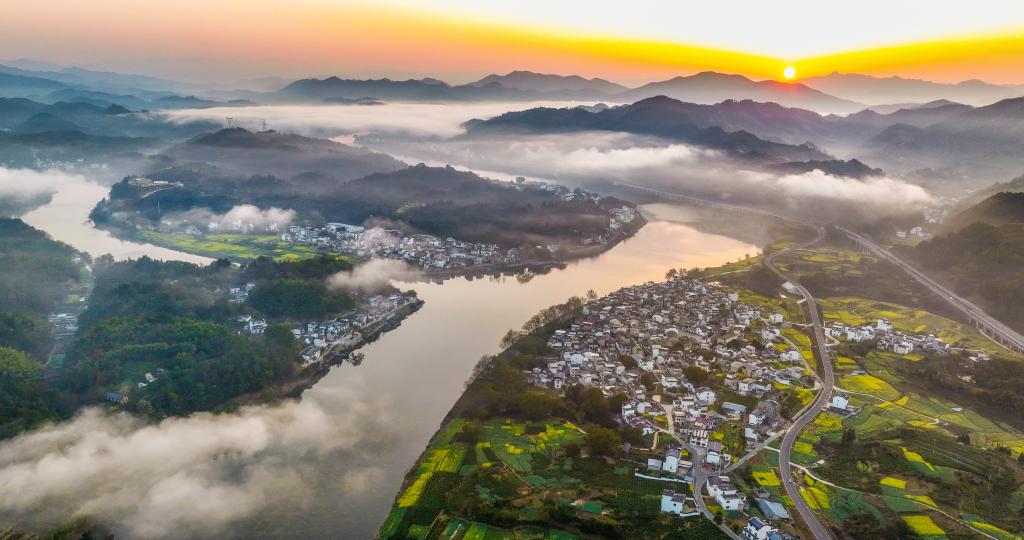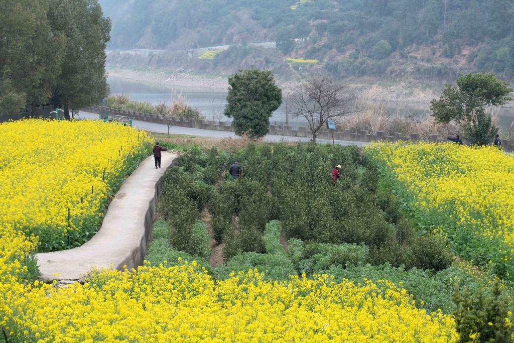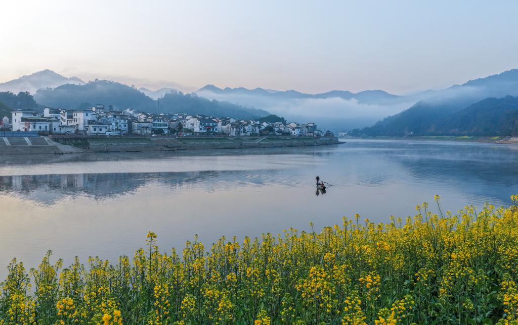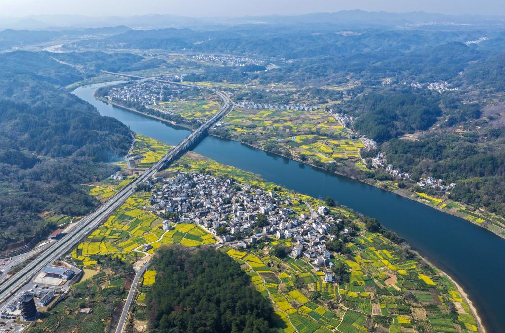GLOBALink | Rapeseed flowers bloom along bio-diverse Xin'an River as spring arrives