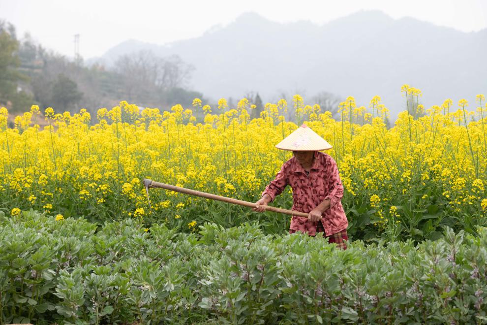 A villager works in a field in a village near the Xin'an River in Shexian County of Huangshan, east China's Anhui Province, March 16, 2026. (Xinhua/Zhang Duan)
