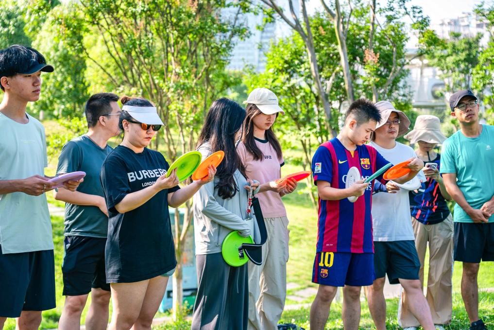 市民在成都公园里玩飞盘
