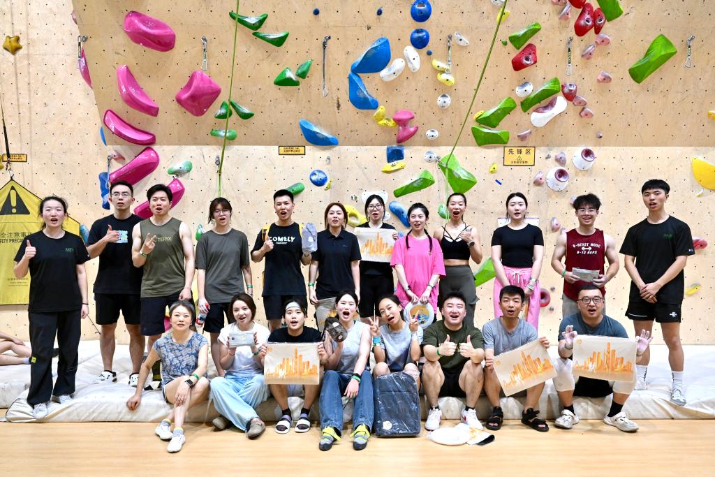 市民在成都体验攀岩运动