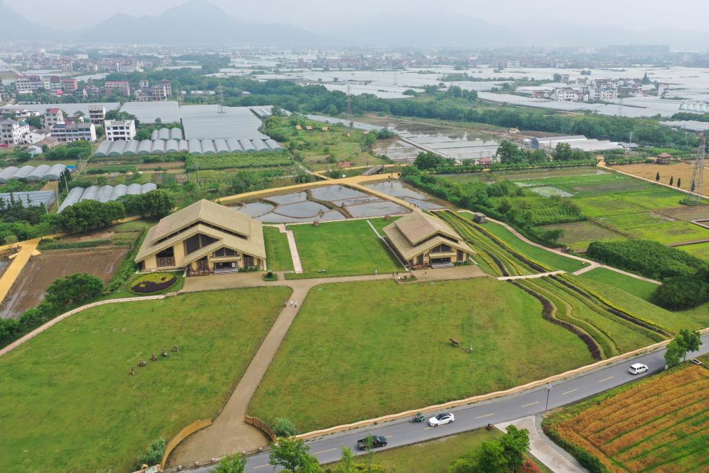 5月12日拍攝的位于浙江省浦江縣的上山考古遺址公園(無人機照片)。新華社記者 黃宗治 攝
