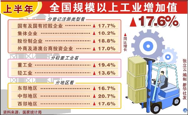 圖表:上半年全國(guó)規(guī)模以上工業(yè)增加值增加17.6%