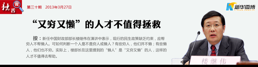 幫窮人,也別防范懶人 幫助“窮人”而不養(yǎng)“懶人”,這當然沒錯。不過,政府需要更多作為的,主要是幫助“窮人”,而不是防范“懶人”。