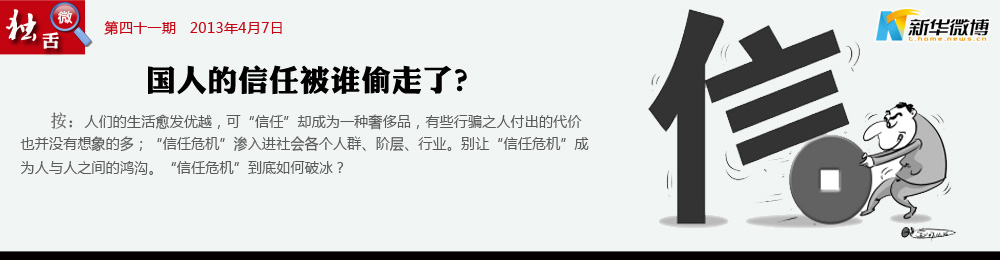 當(dāng)“造假”成為“理所當(dāng)然” 誰偷走了中國人的信任?一個段子說是在如今中國,賣包子的不吃自己做的包子,種菜不吃自己種的菜,賣藥的不敢吃自己生產(chǎn)的藥,賣奶粉則從不吃國產(chǎn)的奶粉。當(dāng)造假作假、坑蒙拐騙成一種風(fēng)氣,甚至成一種理所當(dāng)然時尚,每個人能做的就只剩兩件事了:一個是只信自己,另一個是絕不信別人。