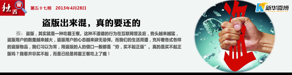無處不在、無孔不入 猖獗的盜版侵權(quán)行為在各行業(yè)見縫插針,增強(qiáng)意識,堅(jiān)決抵制,才是保護(hù)著作權(quán)的打擊盜版的釜底抽薪的方法。
