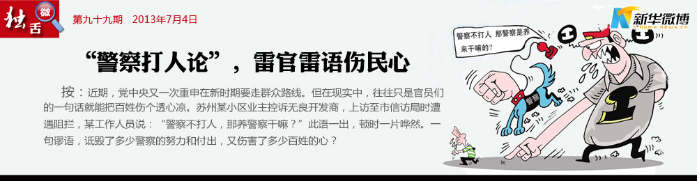 語不驚人死不休 警察是人民大眾的保護(hù)傘,警察是兒歌里的好叔叔,怎么就變成了一個(gè)野蠻群體的代名詞了?是一條魚腥了一鍋湯,還是湯本身出了問題?官員說的話,是要嚇壞百姓,還是拿警察叔叔們開玩笑?