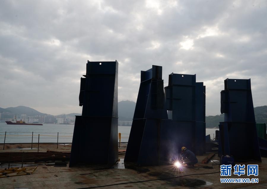 這是準備安裝的香港將軍澳大橋主橋(2月25日攝)。新華社記者 李鋼攝