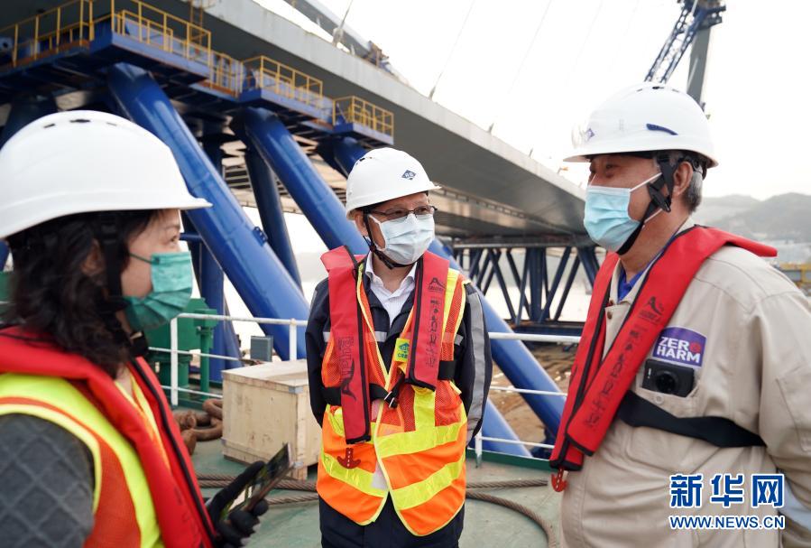 特區(qū)行政長官林鄭月娥于2月25日和特區(qū)政府運輸及房屋局局長陳帆等一同乘船視察了該工程,并與之合影。在當天的個人社交媒體上,她對這一“超巨型的預(yù)制組件”鋼橋表示贊賞,對工程的諸多創(chuàng)新表達期待。