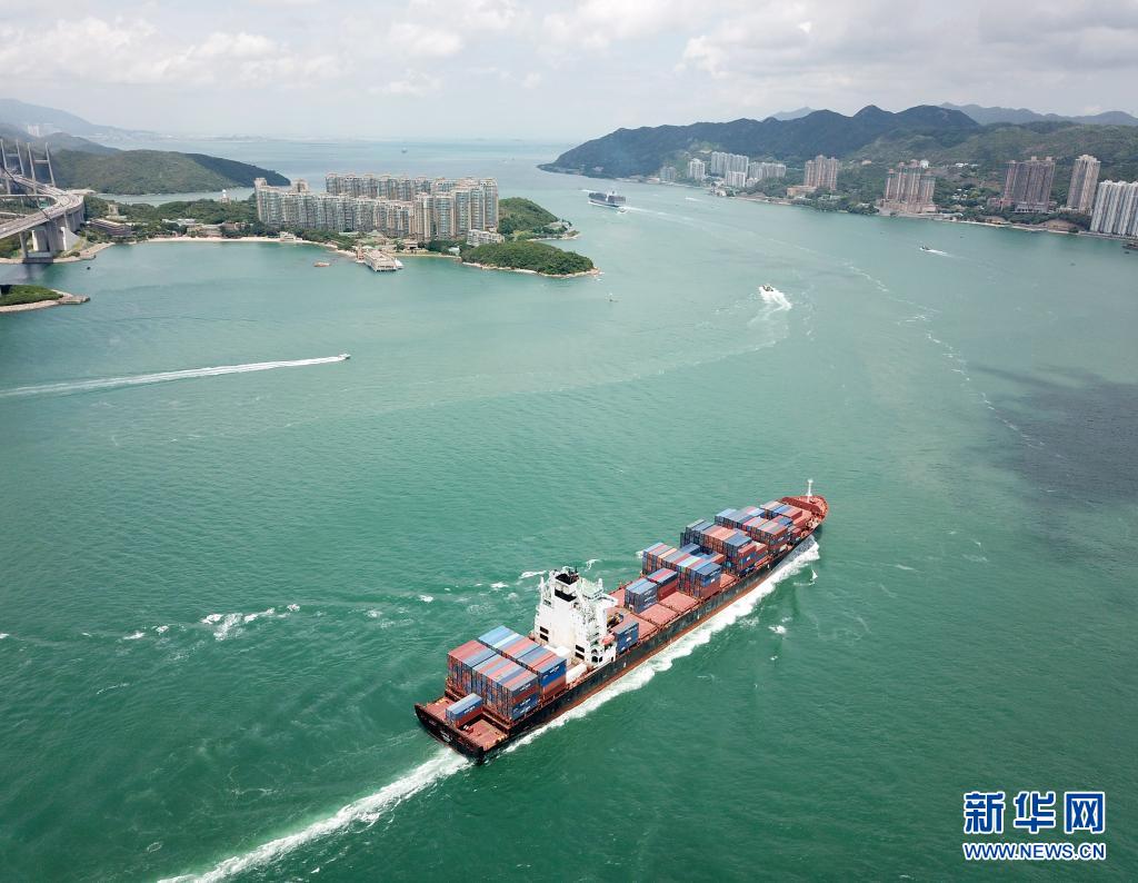 香港汀九橋附近,一艘貨輪駛向碼頭(6月11日,無(wú)人機(jī)照片)。新華社記者 李鋼攝