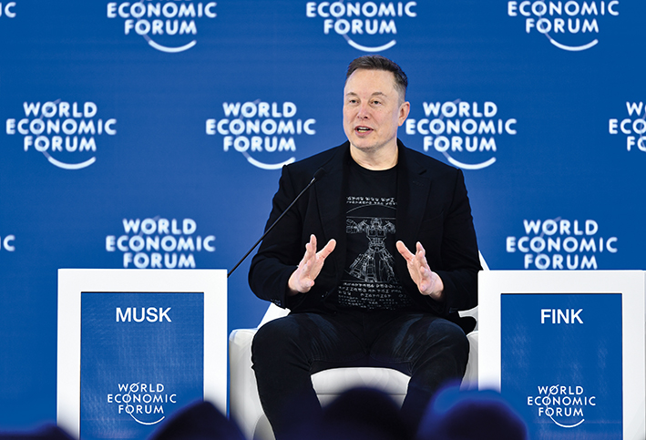 2026年1月22 日,美国企业家埃隆·马斯克在瑞士达沃斯举办的世界经济论坛2026年年会上发言
