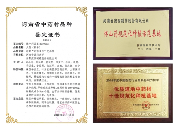 培育地黃“北京3號(hào)”新品種“太圣(新豐)”,2020年2月,獲得“中藥材品種鑒定證書(shū)”。