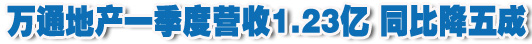 地產(chǎn)“淡定哥”一季度不再淡定,凈利潤出現(xiàn)虧損1860萬元。對于住宅項目主要以中高端為主的萬通地產(chǎn)而言,2012年的壓力依然很大。據(jù)了解,萬通目前在內(nèi)地的住宅產(chǎn)品主要位于北京及周邊地區(qū)、天津、成都等地,均是中高端產(chǎn)品,是調(diào)控的“重災(zāi)區(qū)”。如去年年中開盤的萬通天竺家園就被迫限價,影響了預期利潤。而臺北萬通項目尚未形成利潤。 …[詳細] |