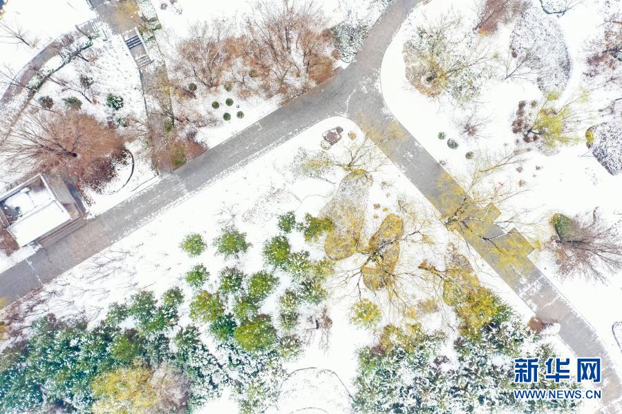 這是3月1日拍攝的山西平遙古城南門外迎薰公園一角(無(wú)人機(jī)照片)。新華社發(fā)(梁生仁 攝)