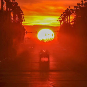 地球绕太阳公转时,太阳直射点在南北回归线之间移动,使得太阳升起和落下的方位在一年中呈周期性变化。当城市街道走向与太阳出没的方位角一致时,太阳会恰好出现在街道尽头正上方的地平线上,形成悬日景观。