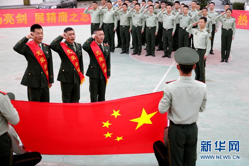 ????“準(zhǔn)備好了嗎,士兵兄弟們,當(dāng)那一天真的來臨,放心吧祖國,放心吧親人……”嘹亮的樂曲聲縈繞在浙江邊防總隊溫州機(jī)場邊檢站營區(qū)內(nèi)。