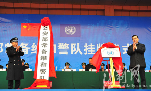 ????經(jīng)國務(wù)院和中央軍委批準(zhǔn),12月22日,公安部常備維和警隊(duì)在山東省東營市掛牌成立。公安部部長助理王儉出席儀式并為警隊(duì)揭牌、授旗。