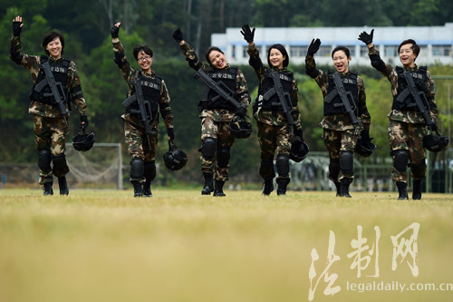 ????“干媽,我太想你了!”“隊長,我要給你個擁抱!”“我也要來個熊抱!”在深圳銀湖山下的邊防警營,記者現(xiàn)場看到,陳偉紅所到之處皆有掌聲,戰(zhàn)士們熱情的上前打招呼、話家常、送祝福。特別是在訓練場,一支六人組成的“霸王花”小分隊格外搶眼,手握九五式鋼槍,腳穿新式防爆靴,個個全副武裝、英姿颯爽,走起路來虎虎生風;細一掂量,僅身上的防彈背心、頭盔、鋼槍就有三十多斤重,均為目前的先進裝備??吹疥愱犻L到來,霸王花們又變成了小姑娘,紛紛涌向老大姐,拉家常、話思念?!拔覀兌际谴蠼愕耐降?!”女中尉小劉說。作戰(zhàn)訓練科賴紹坤科長介紹,該支隊作為全國公安邊防部隊的機動力量,常年擔負多項緝私、緝毒、救援、處突任務;而該支隊平日里,這些女干部主要分布在各機關業(yè)務科室,但是只要任務需要,她們都將奔赴第一現(xiàn)場;所以平時的訓練同樣嚴格;“女干部和男干部一樣,無論在哪個崗位,每個季度都會組織進行體能、技能考核!”(廖鍵)