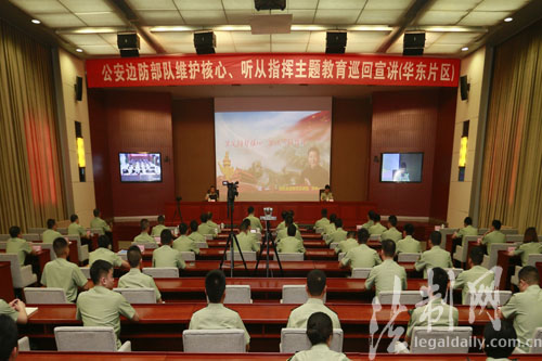 ????5月24日至25日,邊防部隊(duì)“維護(hù)核心、聽(tīng)從指揮”主題教育宣講團(tuán)(華東片區(qū)),到江蘇邊防總隊(duì)開(kāi)展巡回宣講,來(lái)自公安邊防部隊(duì)高度??茖W(xué)校政治法律教研室副教授李中一和士官學(xué)?;A(chǔ)部管理政工教研室講師孫繼寧,分別為官兵進(jìn)行了精彩的授課。上海、江蘇、山東、安徽、江西、浙江、福建邊防總隊(duì)等華東教育協(xié)作區(qū)7個(gè)成員單位通過(guò)視頻組織了收聽(tīng)收看。