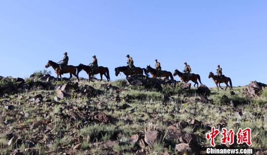 6月15日,阿勒泰邊防支隊(duì)吉木乃大隊(duì)官兵與護(hù)邊員赴邊境區(qū)域護(hù)邊巡查?!⊥跤巡āz