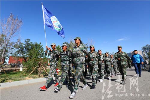 圖為高一新生邁著整齊的步伐到界碑前開展愛國主義教育活動