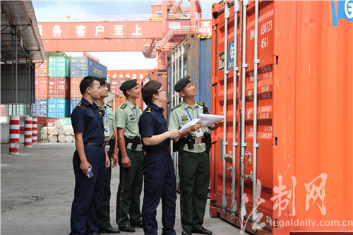 圖為邊檢官兵與海關(guān)執(zhí)法人員對貨柜進行核對